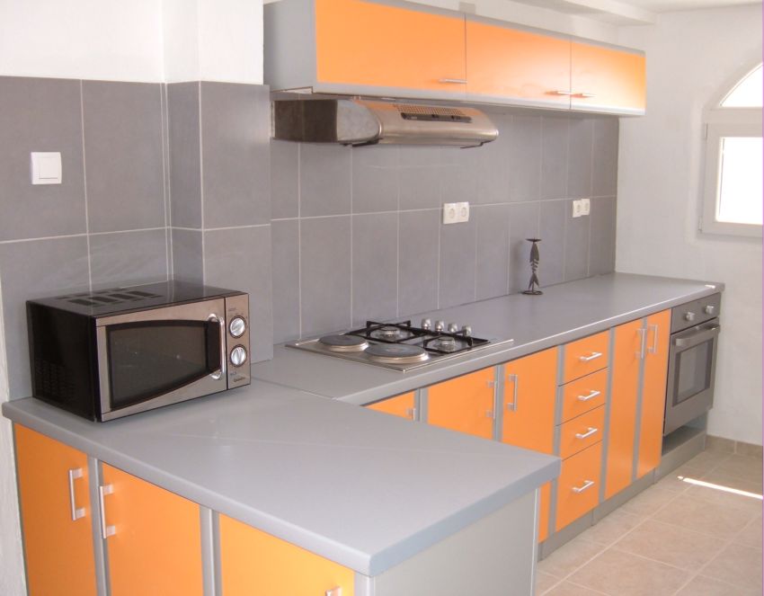 The second smaller kitchen located to the right of the property has a 2 ring electric hob, kettle, microwave with grill, sink and small fridge. It also contains a seating area with a table and 4 chairs. In addition, there is also a summer kitchen that opens directly onto the front terrace- it contains a portable barbeque and sink.